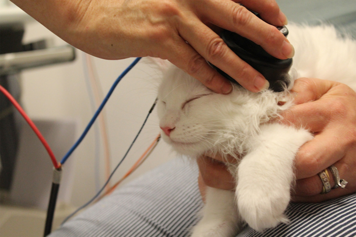 Image: A kitten undergoes a hearing test at the AHT. Image: AHT.