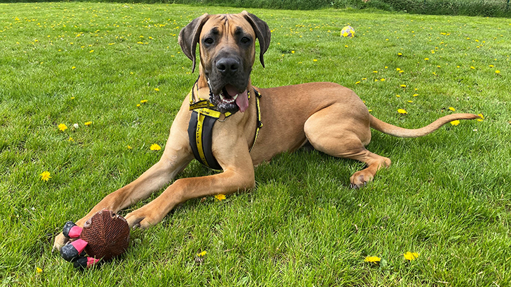 Great Dane Crossbreed Harley was handed into the care of Dogs Trust West Calder in May this year after his previous owner’s circumstances changed which meant they could no longer provide him with the home he required.