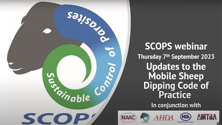 Speakers at a SCOPS-led webinar today urged mobile sheep dippers, farmers and prescribers to make themselves aware of updates to the cross-industry Mobile Sheep Dipping Code of Practice – to ensure the ongoing effectiveness and safe use of organophosphate (OP) dip, particularly for the control of sheep scab.